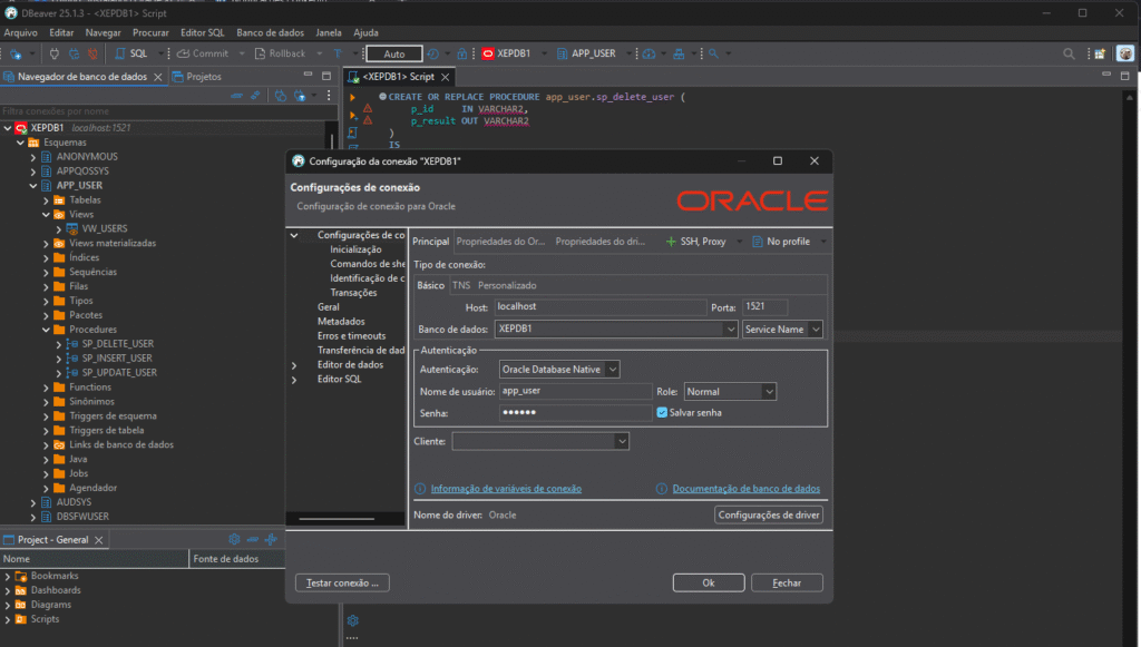 Configurando a conexão DBeaver para acessar o Oracle XE
